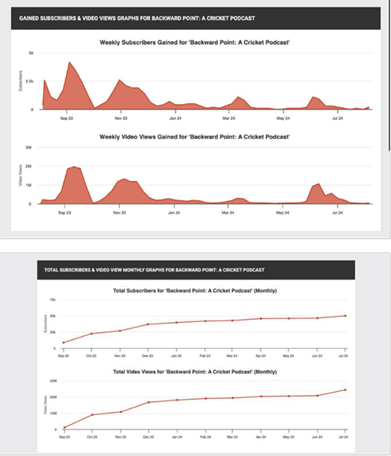 We grew the brand from zero to over 120,000 subscribers across YouTube, Instagram, and TikTok, building the biggest cricket podcast in America with more than 80 million views across platforms